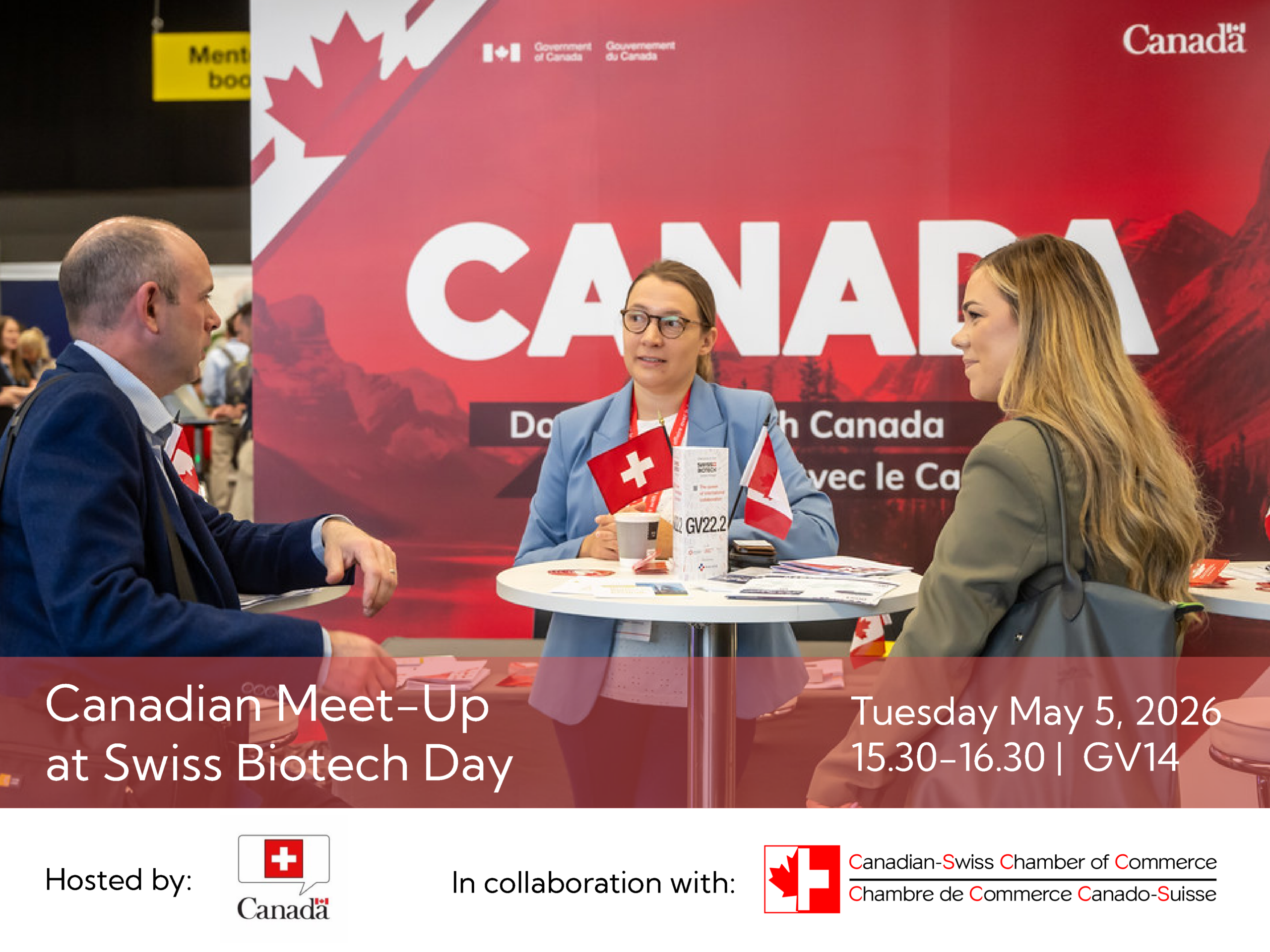 The Embassy of Canada to Switzerland and the Canadian-Swiss Chamber of Commerce invite you to stop into the Canada booth at Swiss Biotech Day for an informal Canadian Meet-Up!